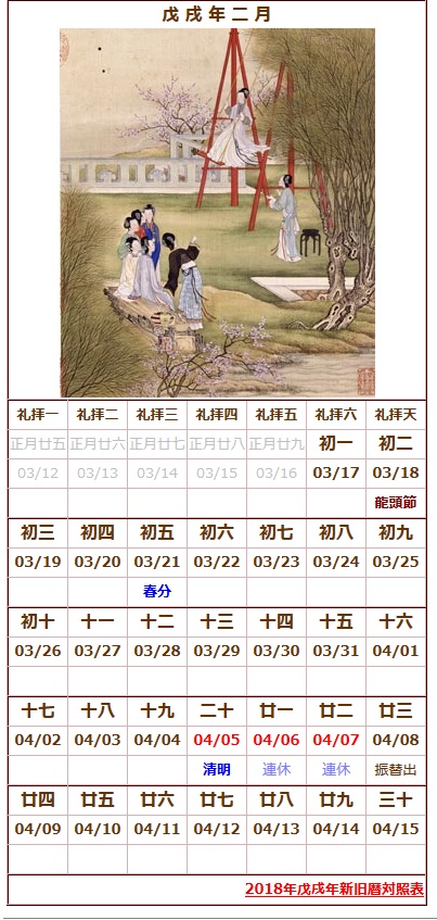 今年からメインサイトTOPに置いている新旧対照カレンダーをご紹介。