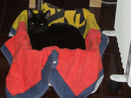 ぼろぼろにされたので、箱&敷き布を替えました。
