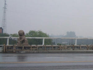 目の前に運河が見えたので、橋のたもとのお獅子のところまで歩きました。(25分)