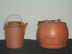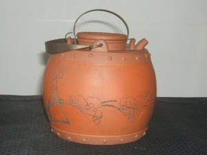 右側の壺に熱湯をいれ、急須をセットしてお燗します。