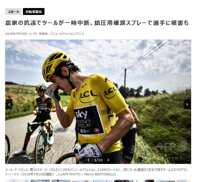 ツール・ド・フランスが、抗議活動で一時中断したというニュースです。