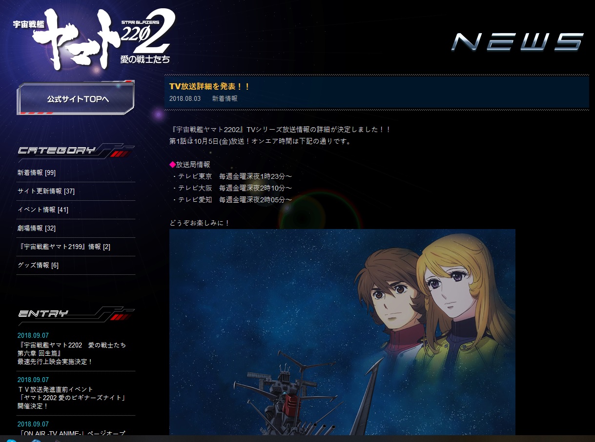 『宇宙戦艦ヤマト2202』TVシリーズ放送情報の詳細が決定しました!!