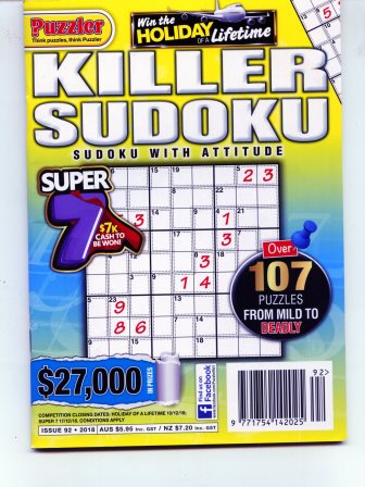 この『KILLER SUDOKU』は先日、シドニー空港の書籍売り場の雑誌コーナーで買いました。