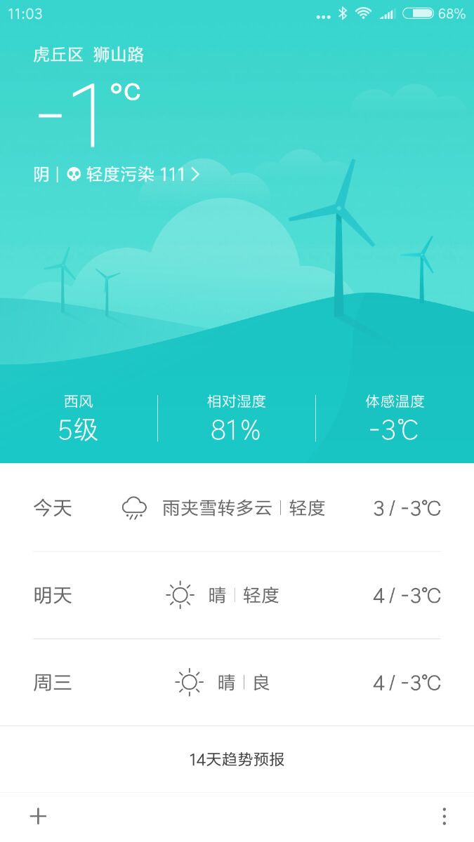 防災のほうで大雪に対する注意が出ている蘇州です。