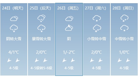 24日 曇り→大雪、25日 暴雪→大雪