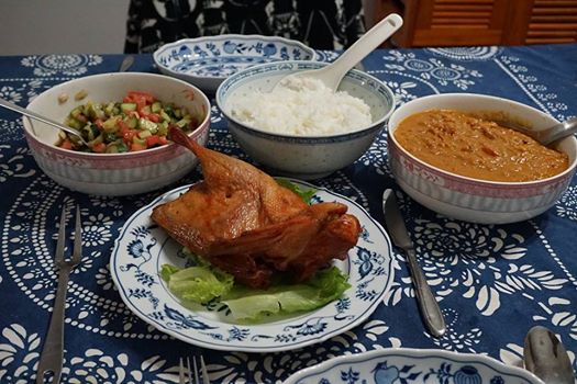 特製チキンカレーと、タンドーリチキンの代わりに買ってきた「紅焼鴨」
