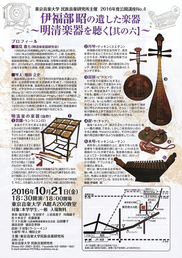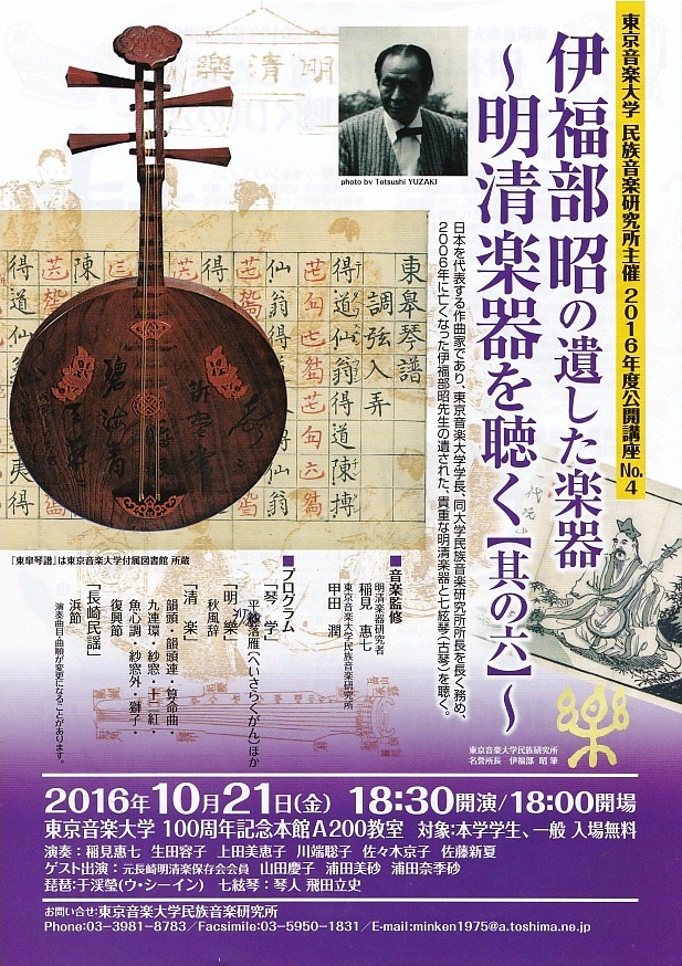 東京音大の公開講座「伊福部昭が遺した楽器~明清楽器を聴く[其の六]~」で