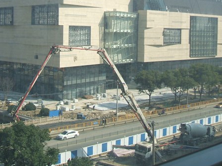 調べたところ、コンクリートポンプ車(中国語では「混凝土泵车」)というそうな...