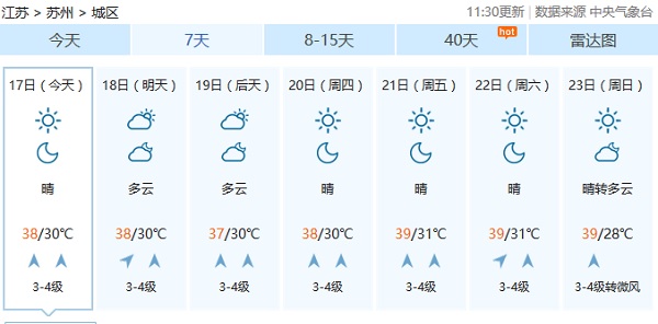 蘇州のお天気、一週間予報です。
