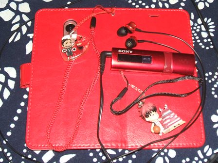 MP3プレーヤーにつけていた赤のホルダーとストラップを流用。