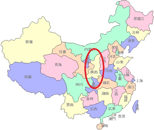 赤い楕円形の中が陜西省。
