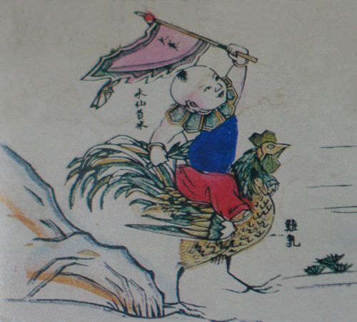 清朝の年画『大寒物候圖』鶏乳(にわとりとやにつく)