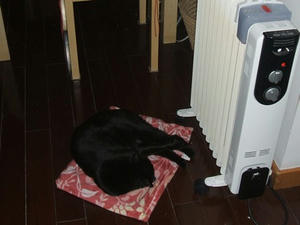 オイルヒーターの前から離れないクジャ。