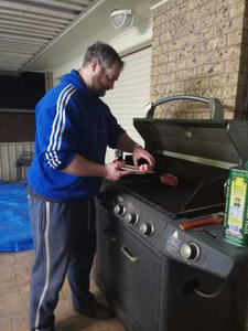 試合が始まる前に娘のパートナー氏が、オージービーフを焼いてくれました!