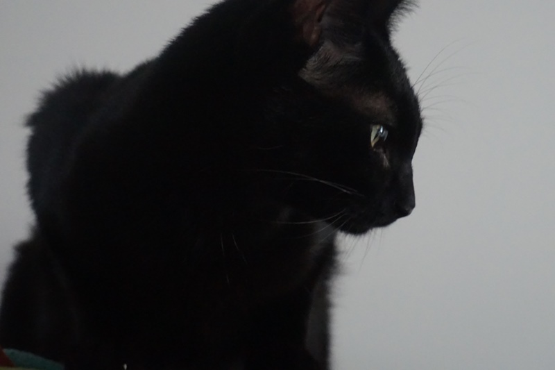 本棚の上から.... 何かをしっと見ています。