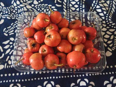 近所のスーパーで山査子(さんざし、Crataegus cuneata)を買いました。