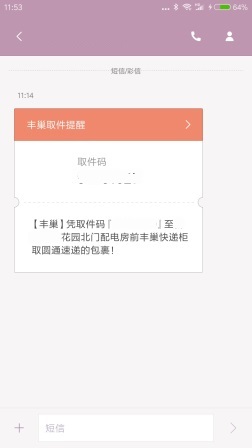 携帯電話にメッセージで荷物の受け取り番号が届きました。