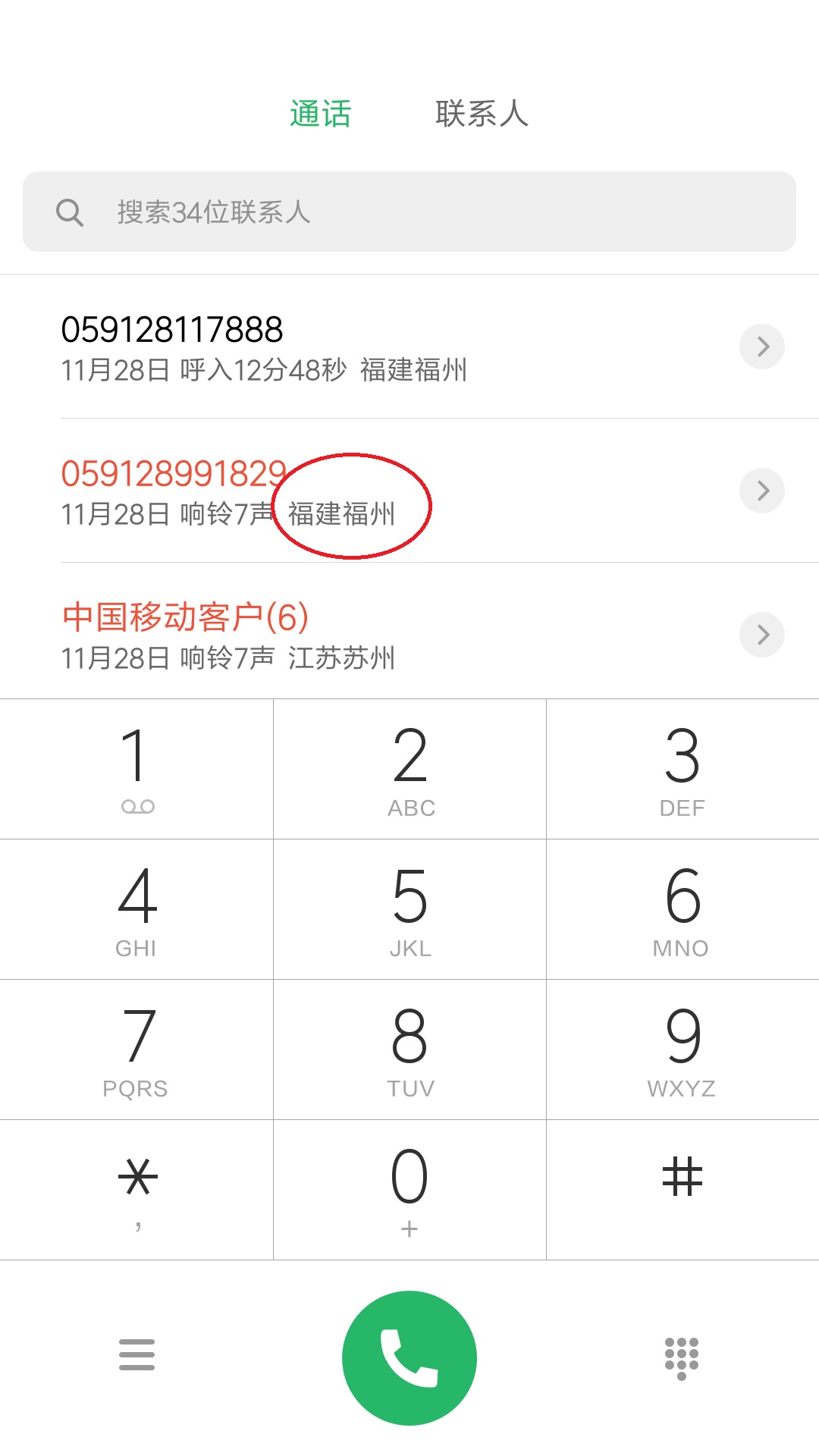 で!!!今回、見慣れぬ街(福建省福州市)の登録されていない番号からの着信がありました。