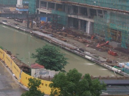 土曜日は、建設現場が水浸しで、排水口から水がどんどん流れてきていますが、